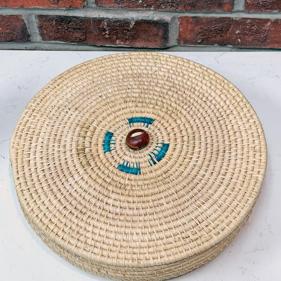 These exquisite gift baskets are meticulously crafted by the indigenous Piapoco women, who live along the banks of the Orinoco River in the Amazon region of Venezuela. The Piapoco skillfully harvest fronds from the moriche palm (Mauritia flexuosa), a native species of the Amazon. Employing an intricate technique, they carefully cut the fronds into strands, boil and dry them to create the fiber that the women weave into these stunning baskets with a natural seed-button closure. These baskets are works of art. Your basket purchase provides crucial support to the Piapoco indigenous people. You can repurpose your basket for storage, picnics, or display.