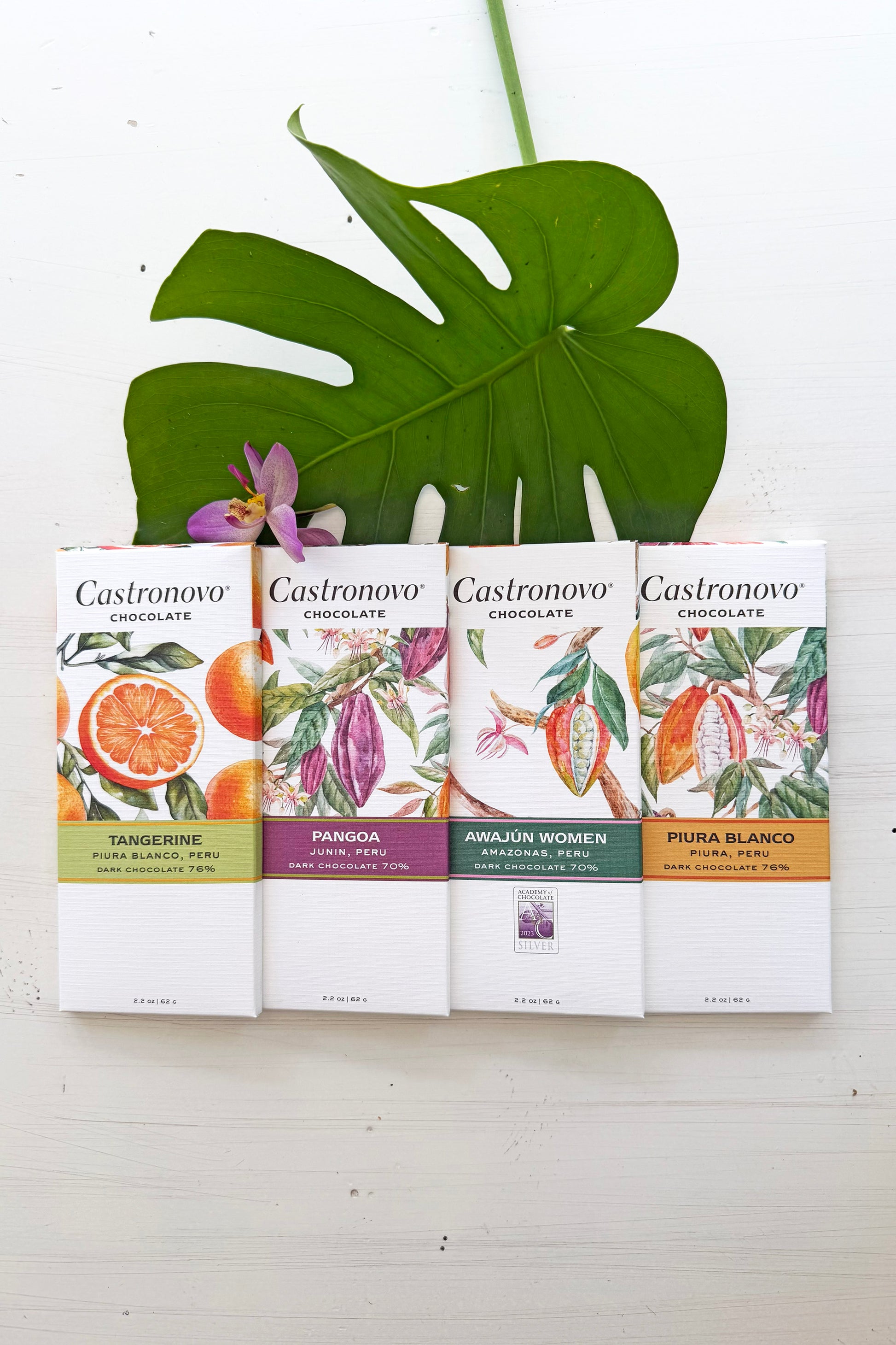 From the bright citrus and delicate nuttiness of Piura to the deep cherry and fig notes of Pangoa, and the warm vanilla and spice of indigenous Awajún cacao, each bar offers a unique flavor journey through Peru’s diverse cacao terroirs.