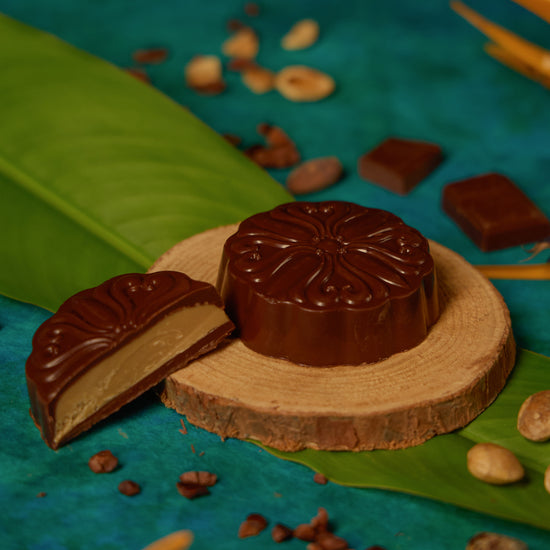 Flavor Profile: Our gourmet version of a seed butter cup, since we are nut-free. The seed is roasted, ground and combined with white chocolate to form a smooth creamy, melt-away center that tastes like peanut but more delicate and earthy. It is paired with our Zorzal, Dominican Republic 72% dark chocolate as the outer shell in this batch.