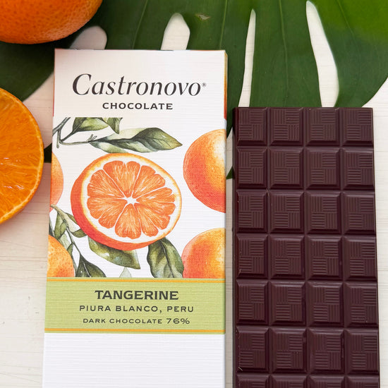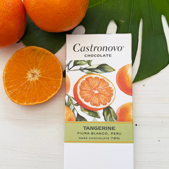 Flavor Profile: Crafted from Peru’s rare Piura Blanco cacao, this dark chocolate bar is delicately infused with tangerine essence for a vibrant, citrus finish that lingers on the palate.